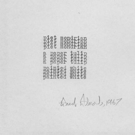 ‘A paper tulip painted white’ (centre) —example of Concrete Poetry.